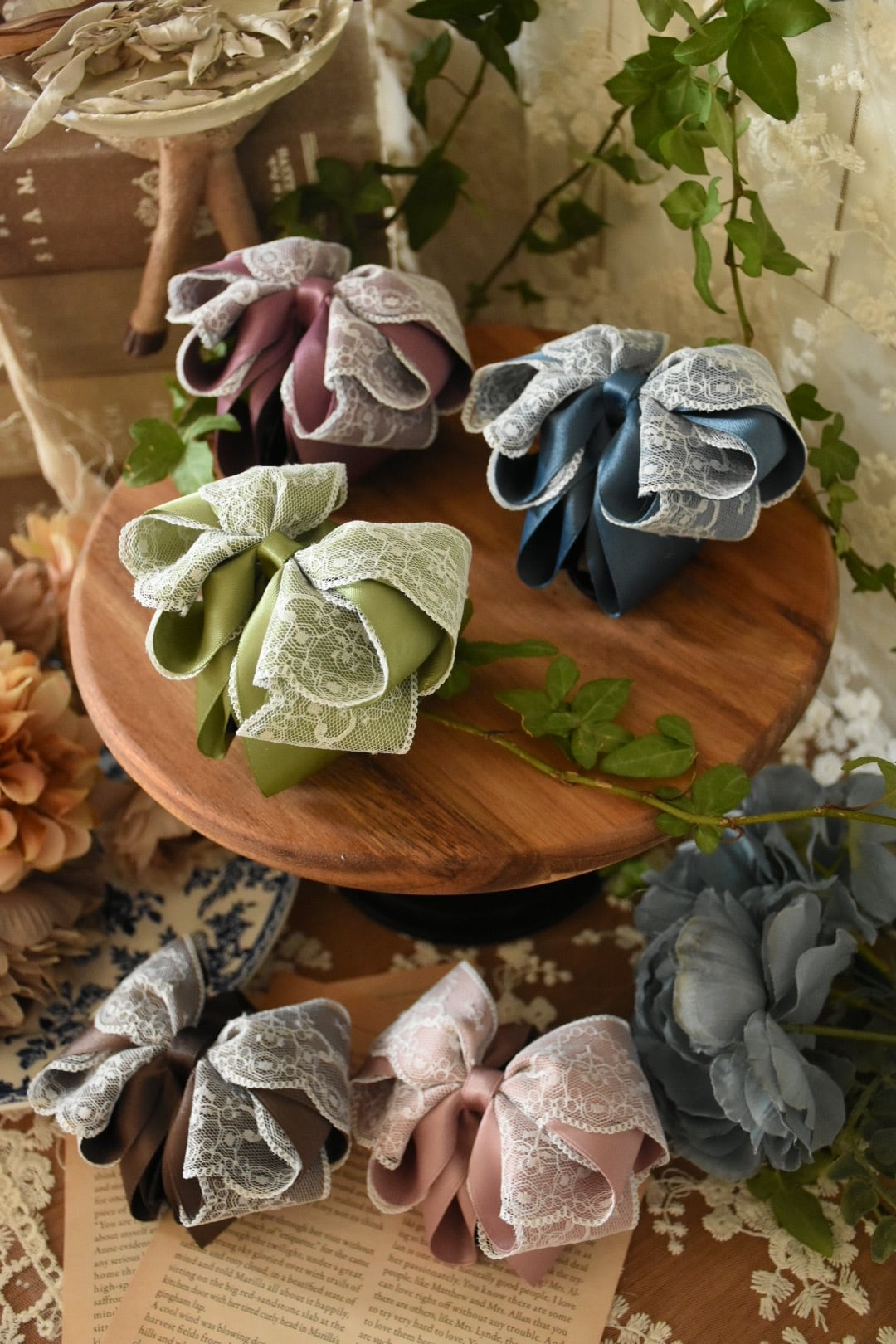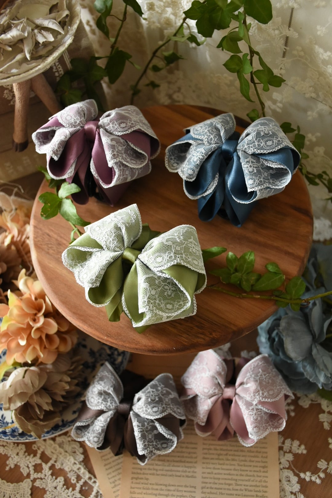 レースの透明感とサテンの艶が重なり合い